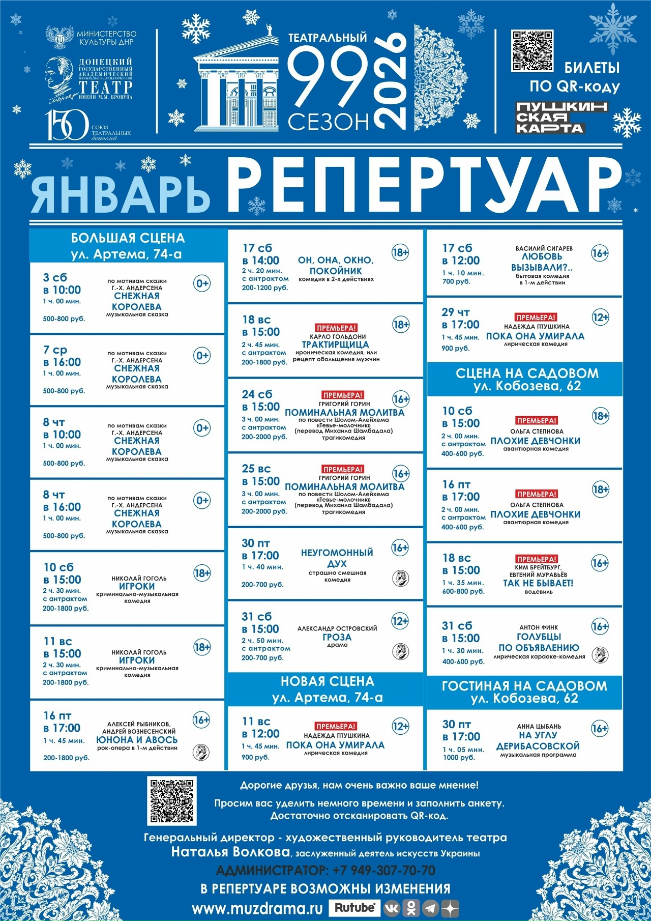 ​Донецкий драмтеатр Афиша январь 2026